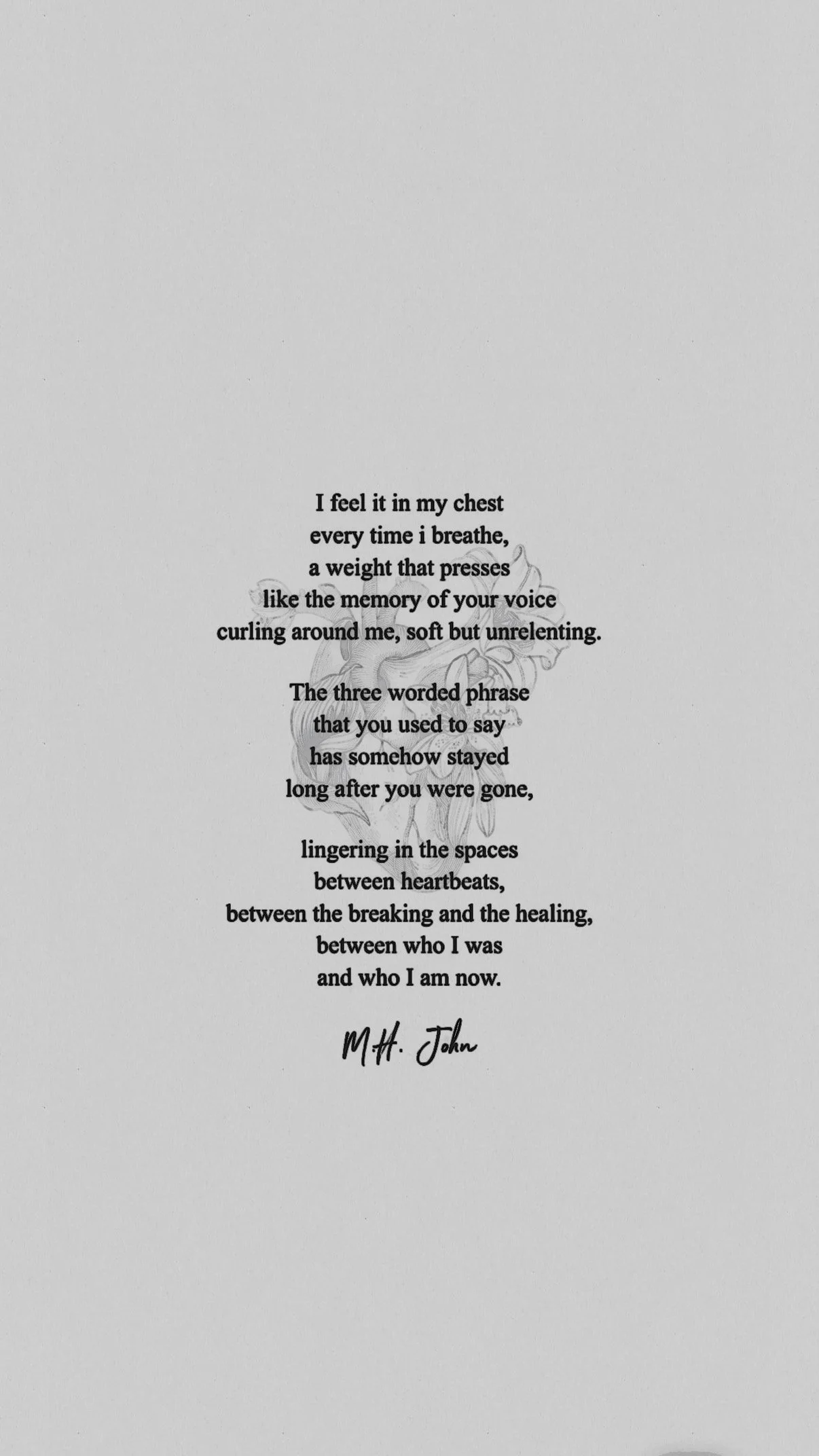 This poem reflects on the enduring presence of memory and love. It examines how words and emotions can linger in the body, shaping the spaces between past and present. As tender and introspective as this poem is, it conveys the subtle, lasting impact of intimacy and the quiet ache of remembrance.